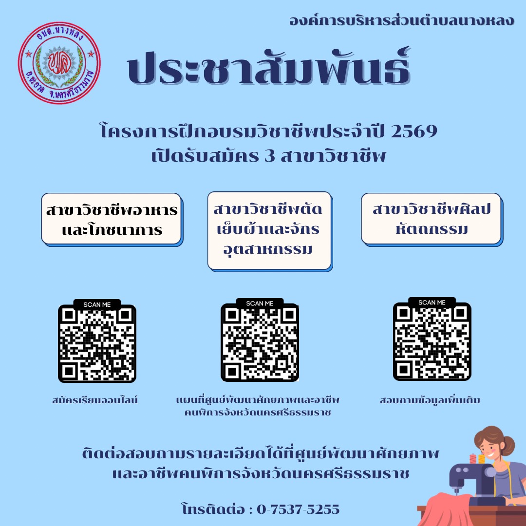 ประชาสัมพันธ์โครงการฝึกอบรมวิชาชีพประจำปี2569